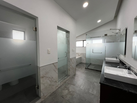 recamara principal con doble vestidor , tina, vapor, terraza con vista a los campos de golf y puerta de seguridad.