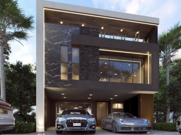 Planta Baja: Cochera para 2 autos semitechada, Bodega/cuarto de